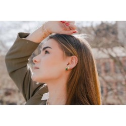 Petite puces serties de strass et pierre verte en forme de goutte.